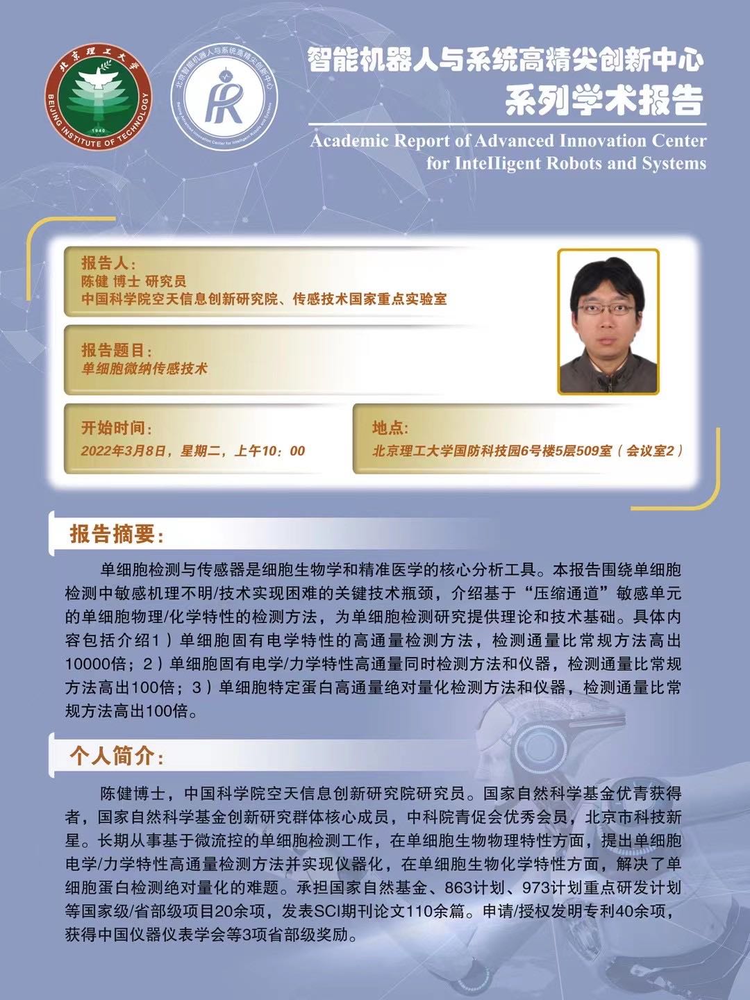 中国科学院空天信息创新研究院陈健研究员到访课题组并进行了题为“单细胞微纳传感技术”的学术报告。会后,陈健研究员与课题组师生进行了亲切的交流。